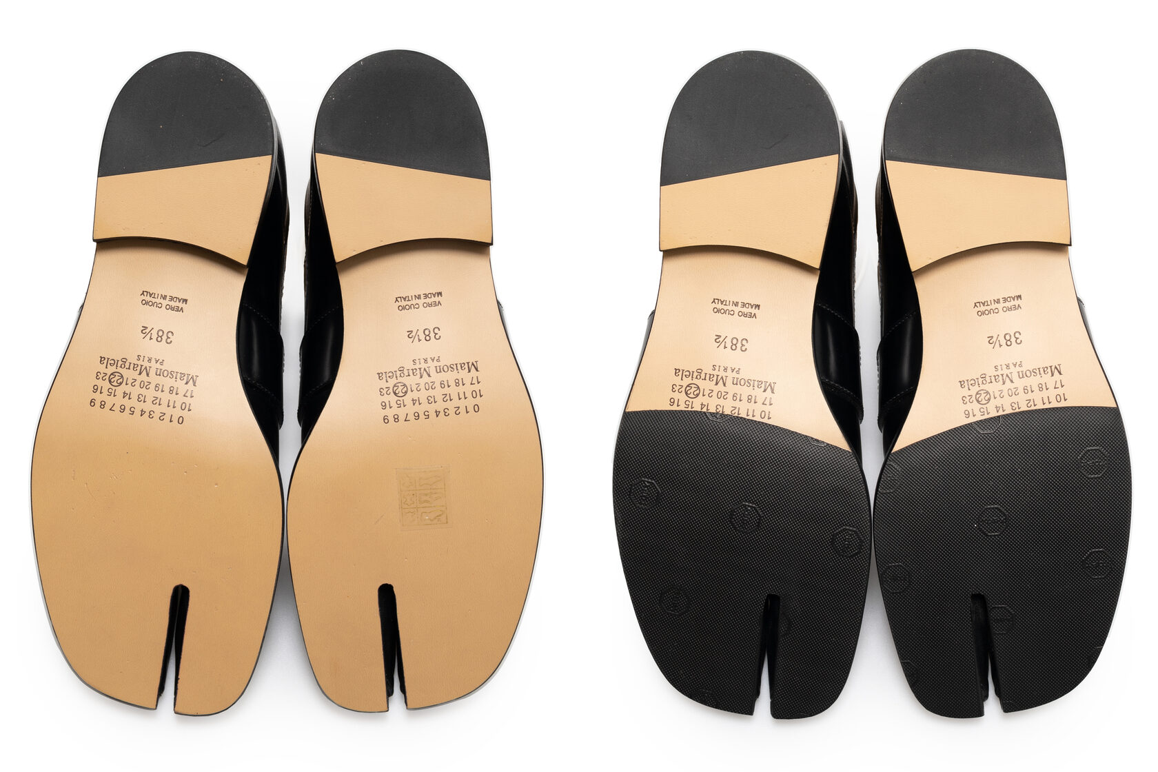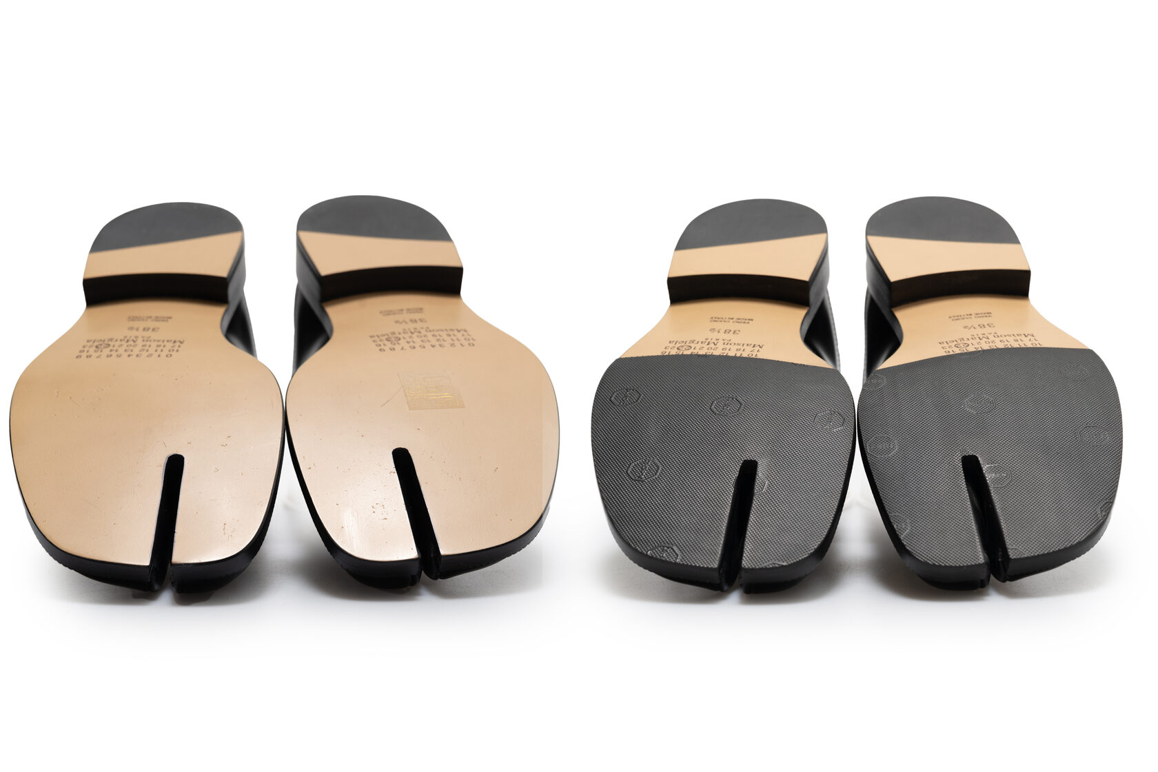 Почему профилактика на Tabi - это сложноКонструкция подошвы Tabi исключает стандартный подход. Нельзя просто наклеить резиновый накат - необходимо вырезать форму с учётом разделённого носка, сохранив эстетику и геометрию обуви. Любая ошибка здесь сразу заметна.